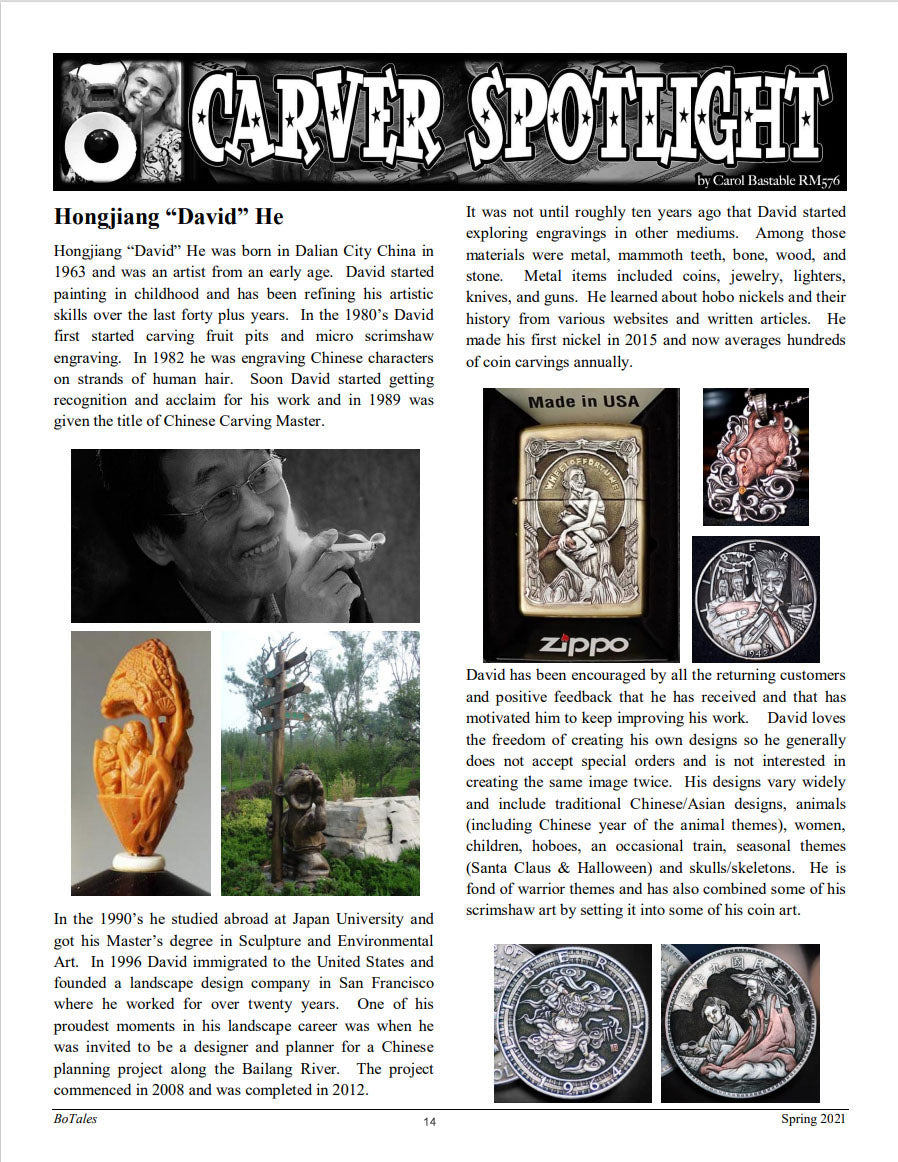 Today, in modern life where high technology is everywhere, the art of hand carving still shines with its unique charm. This is the world of a hand-carved artist whose work not only captures the beauty of the past but also incorporates it into contemporary creations, creating a series of stunning masterpieces. With his craftsmen's excellent carving skills and unique creativity, David has become one of the outstanding representatives of contemporary hand-carved art. His works reveal endless inspiration and convey deep emotions and rich cultural connotations. David has expanded his brand to include boutique knives, jewelry-grade pendants, belts, coins, etc. making them stand out from other similar products on the market. Each of David He's works is a story, evoking memories, triggering thinking, and even expressing emotions. Through it, you can see the soul of the person who carved it and his unique perspective. Whether you are an art lover, collector, or looking for a one-of-a-kind gift, stay tuned to his website to encourage admiration and choose your one-of-a-kind hand-carved artwork. Welcome to explore David He’s hand-engraved art website. This is a deep and creative world, a place where you can immerse yourself in exquisite art.