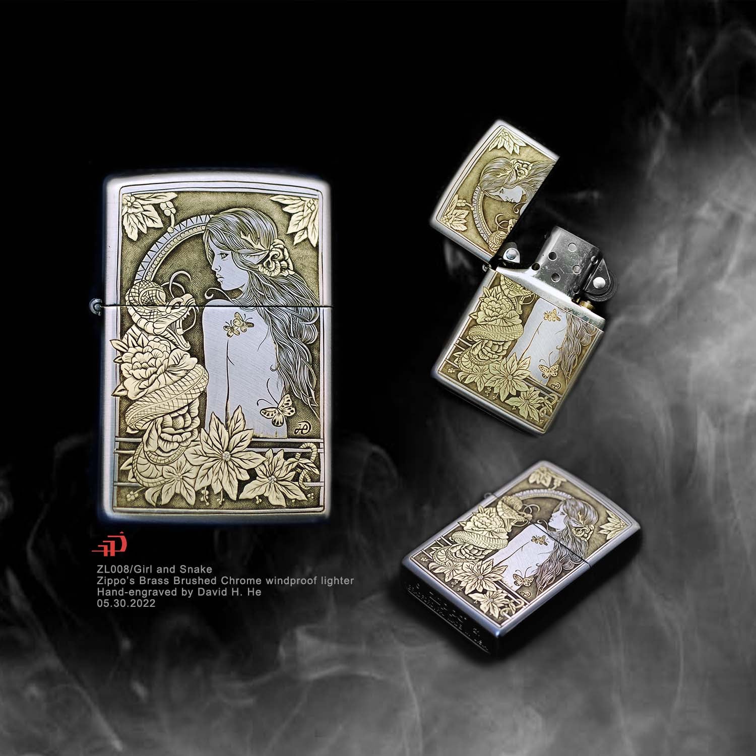 Hand-engraved brass zippo lighter#ZL008