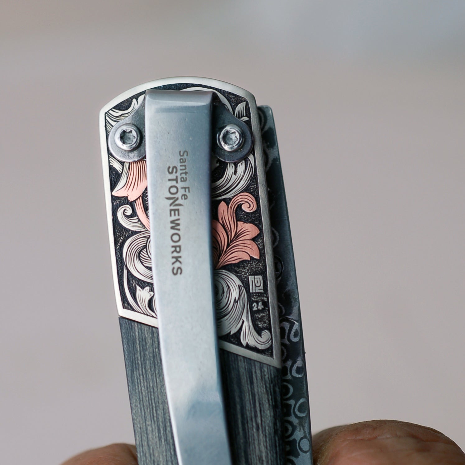 Hand Engraved Santa Fe Stoneworks knife by David He