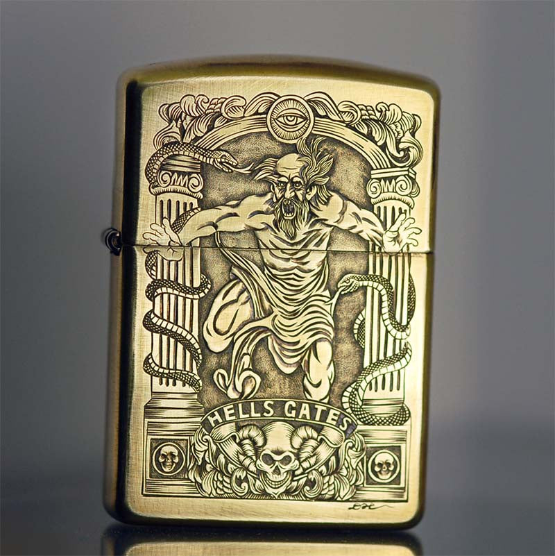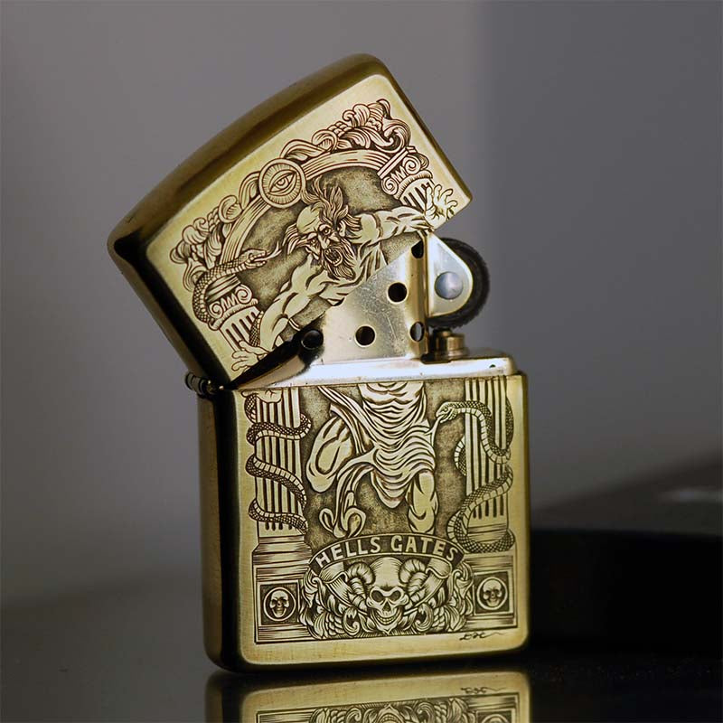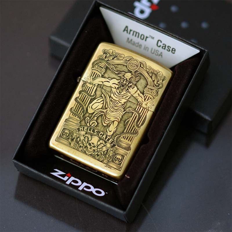 - Zippo 168 Armor Brushed Brass Pocket Lighter